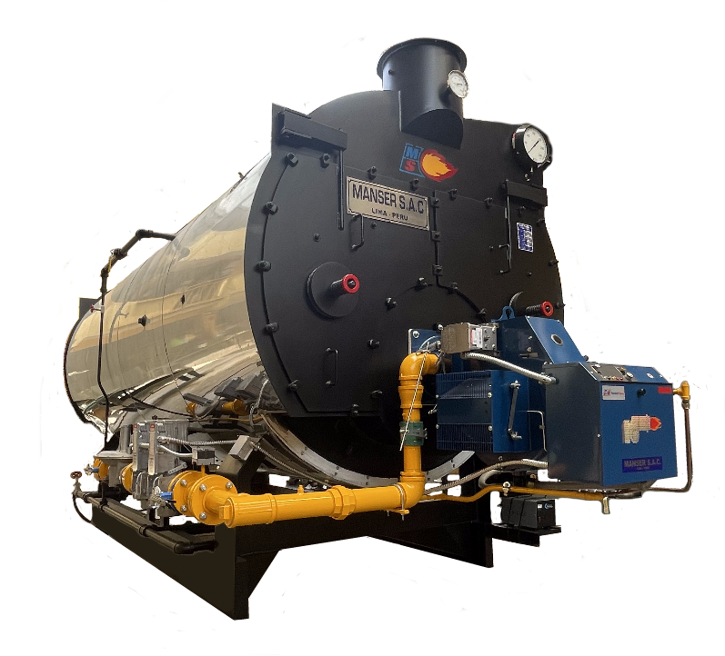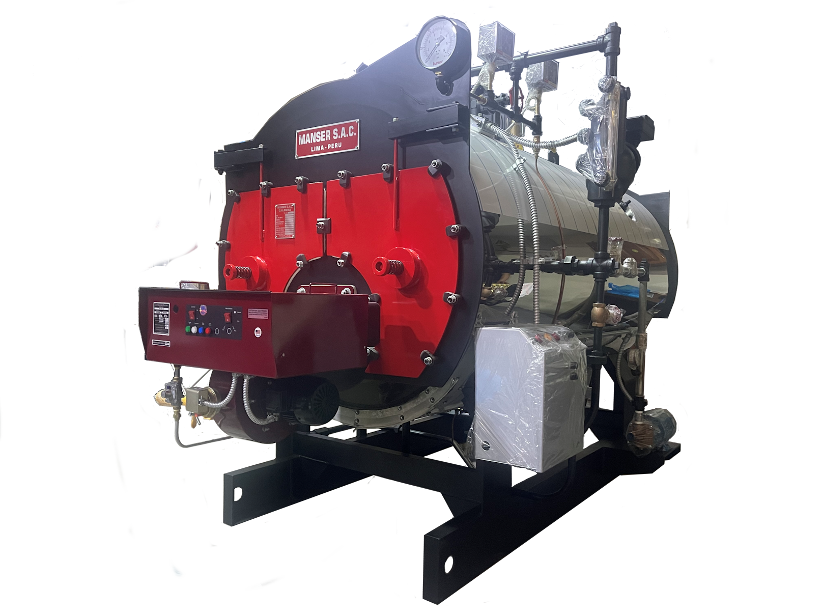 Calderas horizontales de 3 a 4 pasos de espalda humeda (Wet back) desde 100 BHP a 1200 BHP Combustion 500 – Gas Natural
